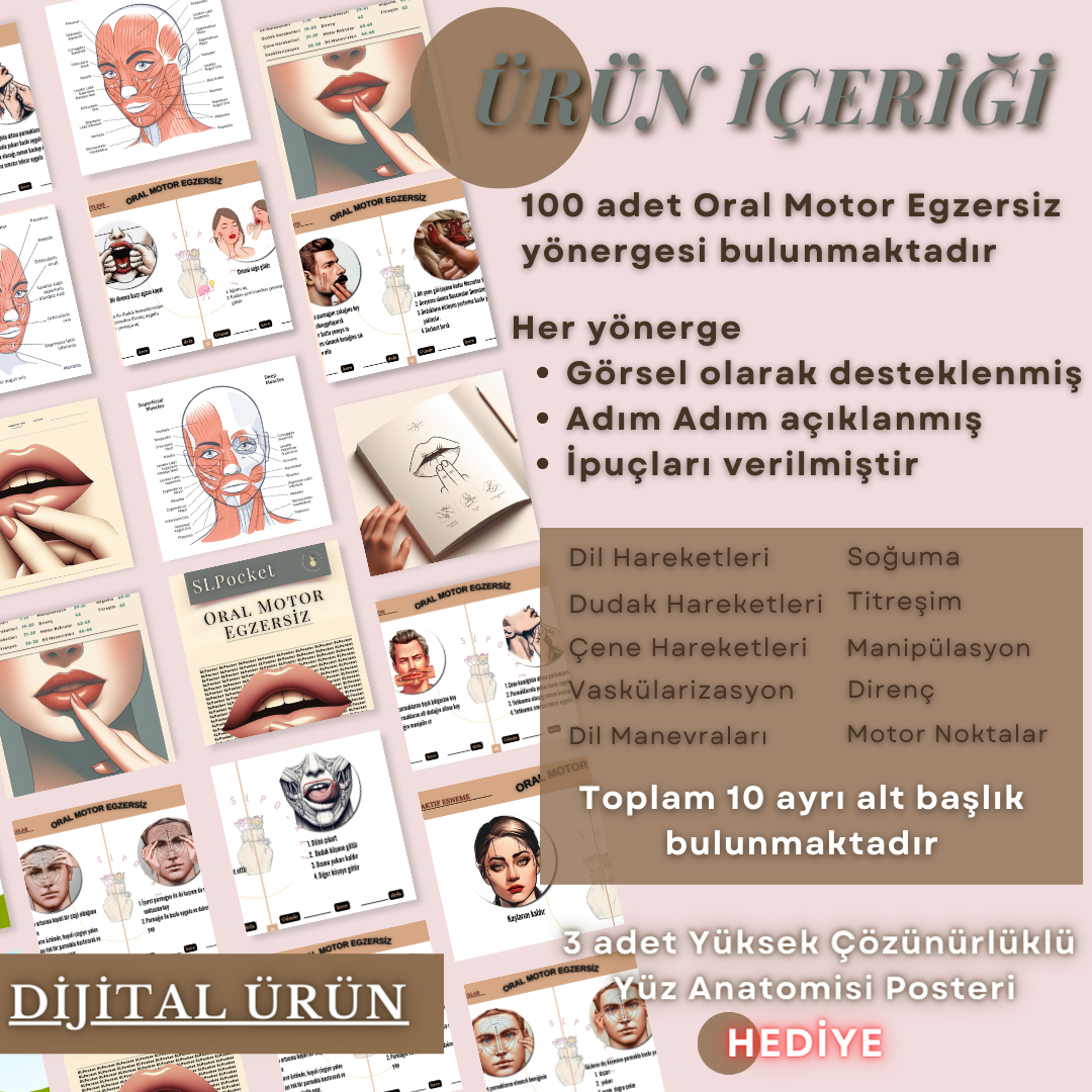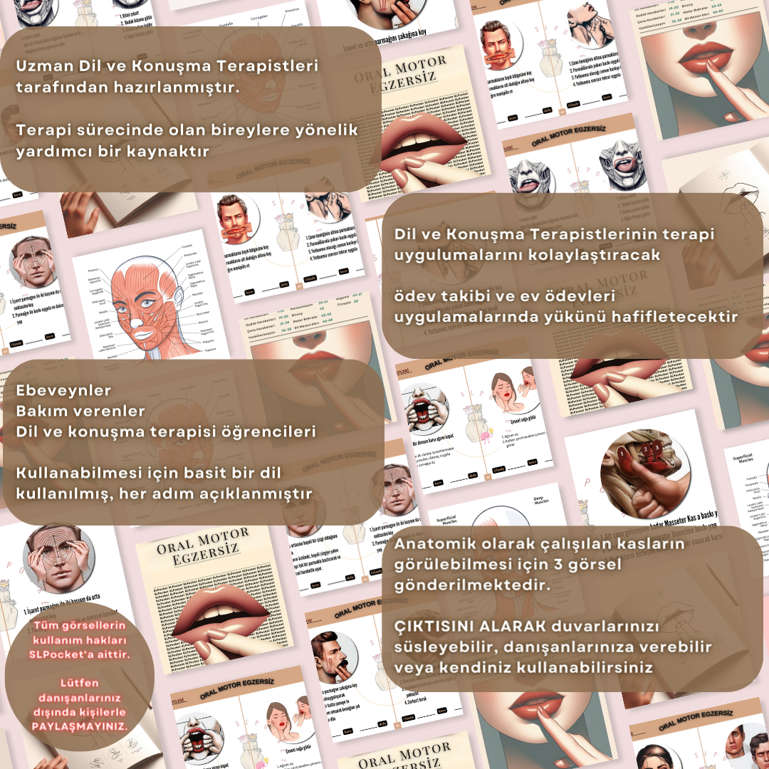 Oral Motor Terapi e-Materyal alanında deneyimli, Uzman Dil ve Konuşma Terapistleri tarafından Terapistlerin- Terapist Adaylarının-Danışanların (Bebek/Çocuk/Yetişkin/Yaşlı) -Ailelerin-Bakım verenlerin ihtiyaçlarını kapsayıcı, terapi sürecinde takip ve ev çalışmaları için kolaylaştırıcı olma amacı ile hazırlanmıştır