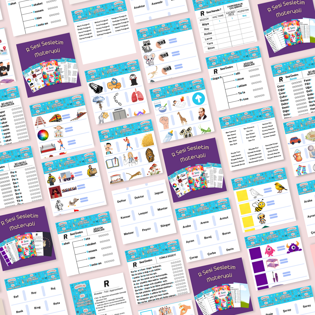 Konuşma Sesi Bozuklukları, R Sesine yönelik hazırlanmış terapi materyalidir. Sesletim ve Sesbilgisi terapilerinde kullanılmak üzere, terapi hiyerarşilerini takip ederek oluşturulmuştur.