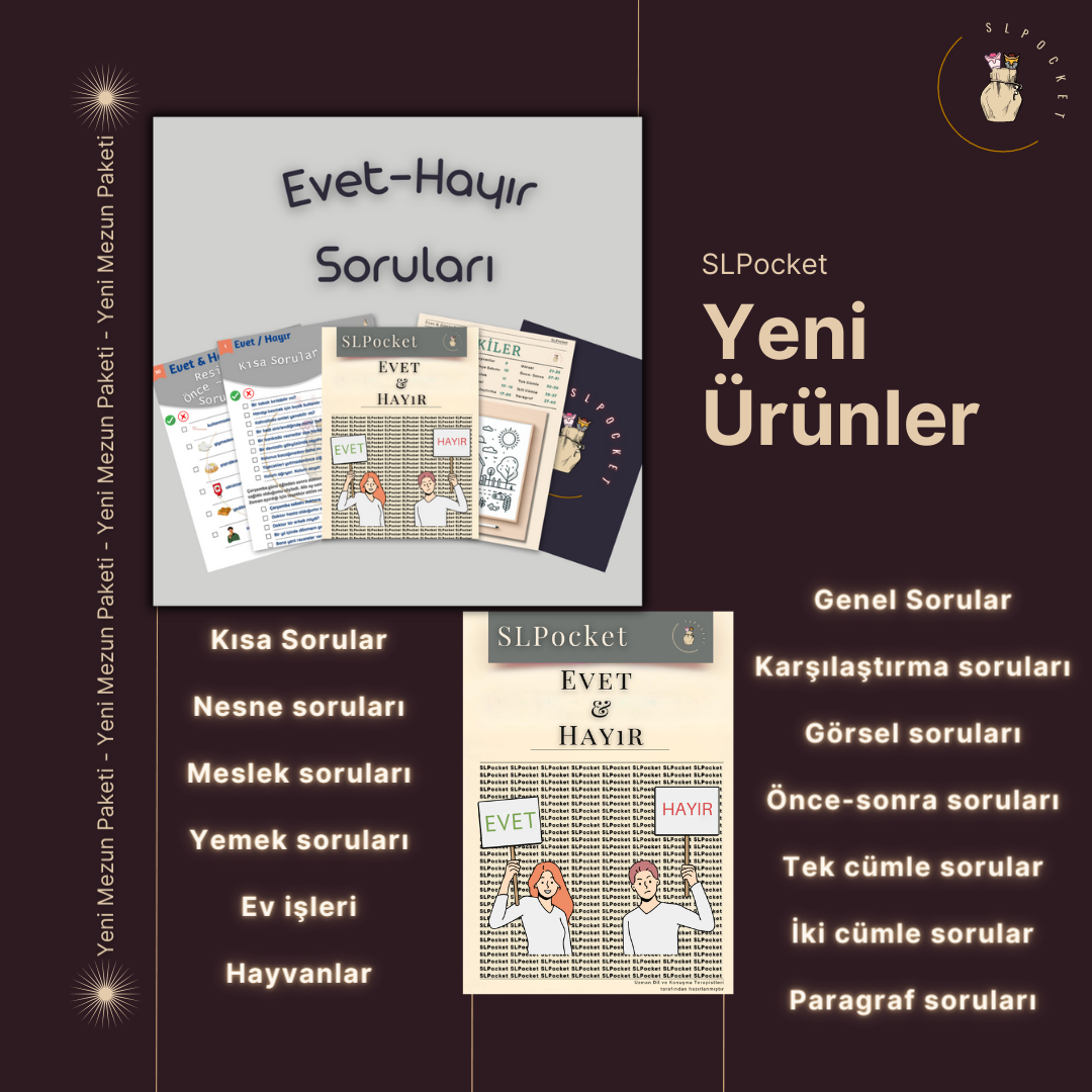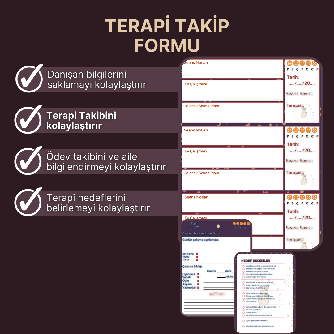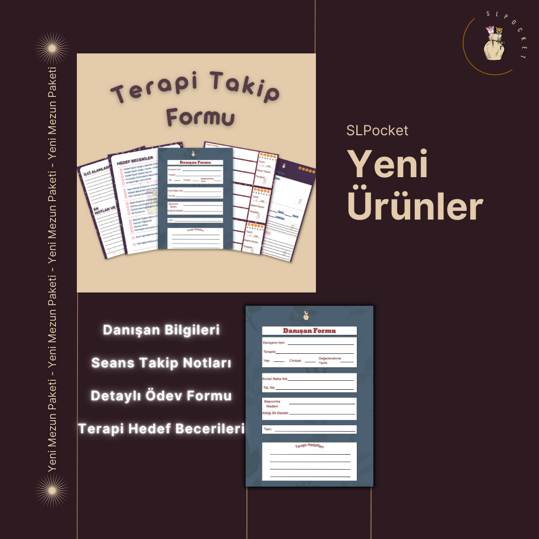 Farklı türdeki bozukluklarda kullanabileceğiniz ve Dil ve Konuşma Terapi seanslarını şekillendirebileceğiniz terapi takip ve destek materyallerini sizler için bir araya topladık